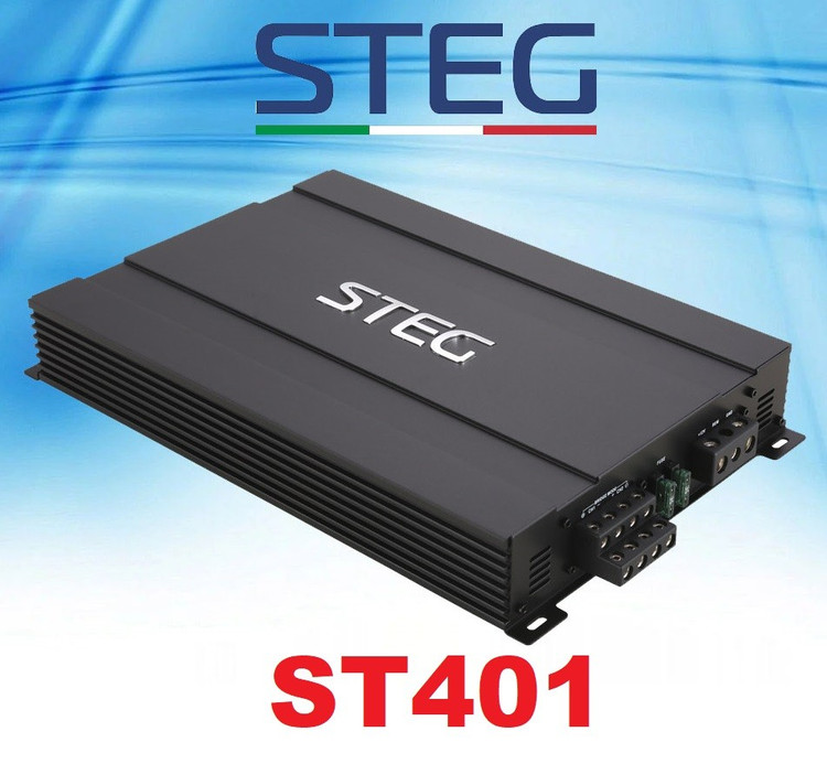Steg ST 401 : آمپلی فایر چهار کانال شرکت استگ که چهار خروجی 90 وات دارد و برای راه اندازی سیستمهای کیفیتی نیمه سنگین ساخته شده است. این آمپلی فایر طراحی، ساخت و مونتاژ کشور ایتالیا است و از لحاظ کیفیت ساخت و خروجی صدا در رده قیمتی خود بینظیر می باشد. طراحی بدنه این آمپلی فایر به گونه ای است که انتقال حرارتی آن به بهترین نحو انجام می شود و برای سیستم های سنگین امکان سوئیچ کردن به حداقل مقدار ممکن می رسد. با توجه به اینکه این آمپلی فایر در کلاس A/B قرار میگیرد تقویت و اصلاح و پخش صدا در آن بسیار عالی انجام شده و با وجود قطعات کاملا ایتالیایی کیفیت صدای خروجی به بهترین نحو ممکن می باشد. این آمپلی فایر برای راه اندازی باندهای سنگین مانند TX669C ام تی ایکس PC710 فوکال، MPX690 هرتز، 710EX کنوود و 7100 کنوود و 6900 و 6975V2 و 6975V3 پایونیر بهترین گزینه است و کیفیت بالای آن باعث افزایش عمر بلندگو و همچنین پخش صدای کامل و واضح از بلندگو می شود. همچنین برای راه اندازی میدرنج های 8 اینچ و 10 اینچ سنگین شرکتهای حرفه ای مانند وایب ، ام تی ایکس ، هرتز و پاوربیس و اوریون و گرندزیرو می توان از این آمپلی فایر استفاده نمود و حداکثر توان سیستم را با بهترین کیفیت ممکن گرفت. برای راه اندازی ساب ووفرهایی تا 500 RMS می توان از این آمپلی فایر استفاده نمود و سابهایی مانند S3-1224 جی بی ال و 1200 کاپا اینفینیتی و یا K12 هلیکس و RS 12 گلیدن را با این آمپلی فایر راه اندازی نمود. در کل اگر دنبال راه اندازی سیستم حرفه ای با کیفیت صدای فوق العاده بالا هستید و دنبال آمپلی فایری با کیفیت ساخت بالا برای حداکثر شفافیت صدای ممکن هستید آمپلی فایر ایتالیایی 401 استگ سیستم گزینه کامل و عالی برای سیستم شما به حساب می آید.